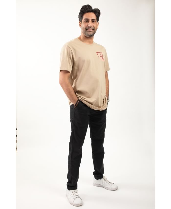 Associez ce t-shirt beige Ky-Kas avec nos pantalons casual bio  ou sweatshirts streetwear bios pour créer un style harmonieux et responsable.