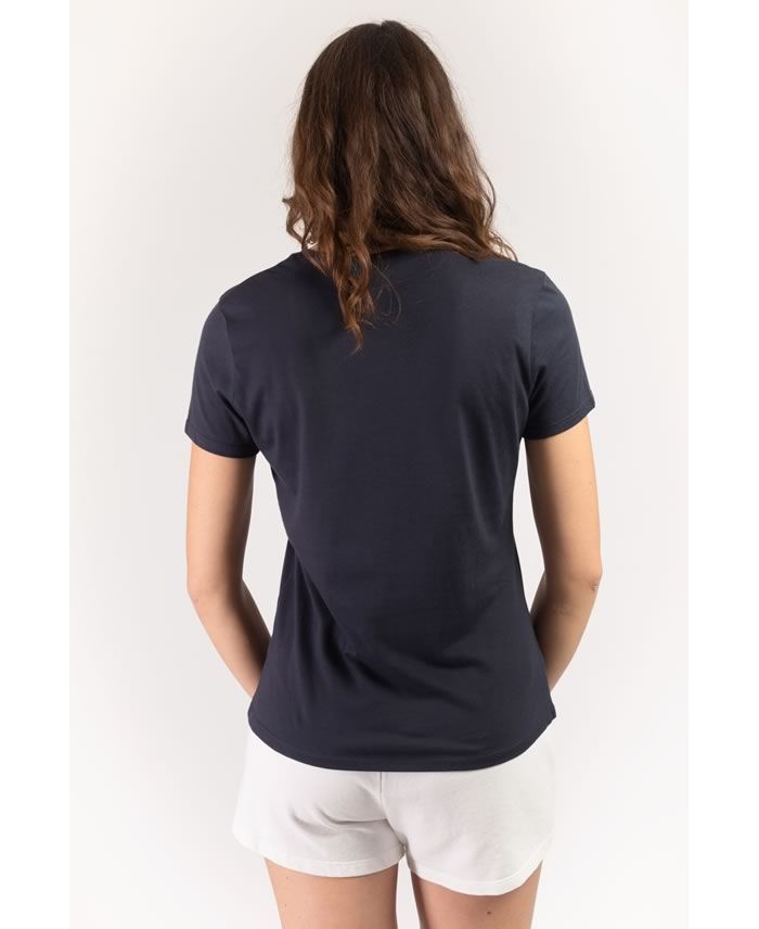 LE T-SHIRT AJUSTÉ FEMME ICONIQUE Manchon serti Col en côte 1x1 Bande de propreté à l'intérieur de la nuque dans le même tissu Ourlet des manches et ourlet du bas avec double surpiqûre étroite 100% COTON BIO Lavage 30 Degrés Eco-responsable